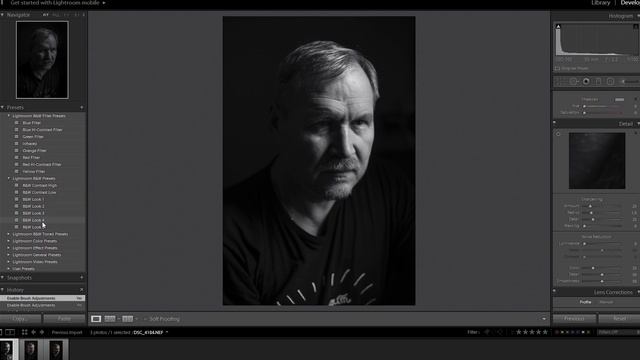 Черно-белый портрет в Лайтрум. Ретушь чб портрета.