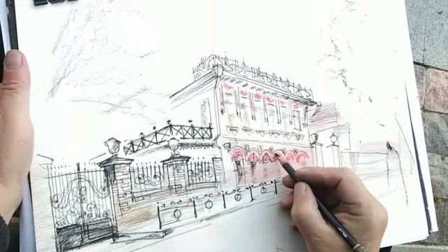 Городская зарисовка Пастельные карандаши Пленэр UrbanSketch Sketching Archisketch 22.08.2022
