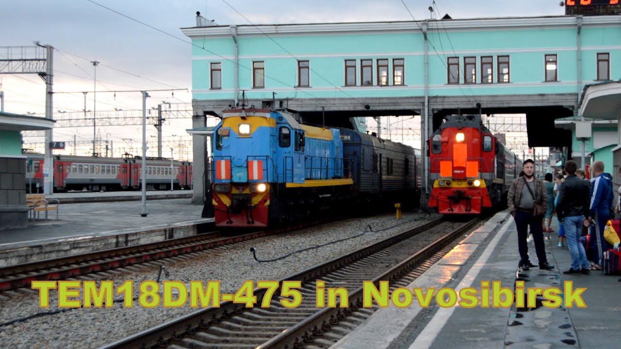 ТЭМ18ДМ-475 и ТЭМ18ДМ-410 маневрируют с вагонами на станции Новосибирск-Главный