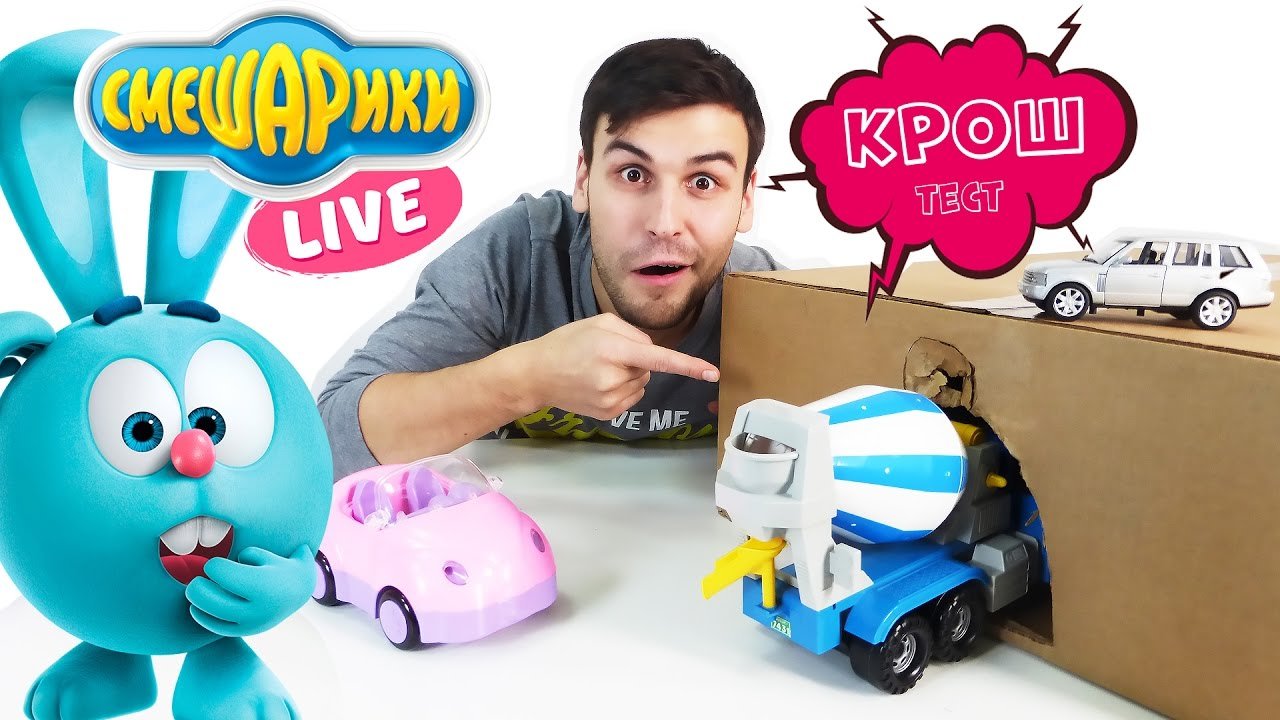Что такое Крош тест? Об этом вы узнаете в новом видео для детей на канале Смешарики Live. Внедорожник, машинка Микки Мауса и бетономешалка испытывают стену на прочность в лучших традициях Top Gear! Смотреть все видео Смешарики Live: https://www.youtube.com/channel/UCy15c4beE539pcPFt4-UrHg Лучшие видео со Смешариками: https://www.youtube.com/watch?v=VgcCaFR9ABU&list=PLm_VvCP2z8lzbukJ5CHO2FXC3oUPcBkSZ Еще больше видео для детей про игрушки на нашем канале СПАСАТЕЛИ ИГРУШЕК: https://www.youtube.com/channel/UC9-eWn5roqlMDYVVWgt7XQA Чтобы не пропустить другие приключения, подписывайся на наш канал ИГРОМУЛЬТИК: https://www.youtube.com/channel/UC9RFqPpLn4BOZOn7J7kUThA Смотрите нас на Фейсбуке! https://www.facebook.com/4ScreensShow Присоединяйтесь к нам ВКонтакте! https://vk.com/club132423271 Следите за нами в Твиттере! https://twitter.com/4Screens_Studio Посети наш Instagram! https://www.instagram.com/4screensstudio/