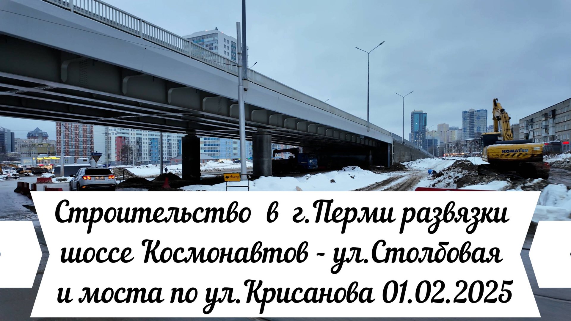С помощью этого видео мы с вами совершим очередной обзор строительства в Перми транспортной развязки шоссе Космонавтов - ул. Столбовая, а также улицы Крисанова и моста через речку Данилиху до улицы Пушкина. Вы сможете увидеть, на какой стадии находится строительство указанного участка на 01.02.2025 год. https://dzen.ru/video/watch/67a1e0bfed83e10083483919