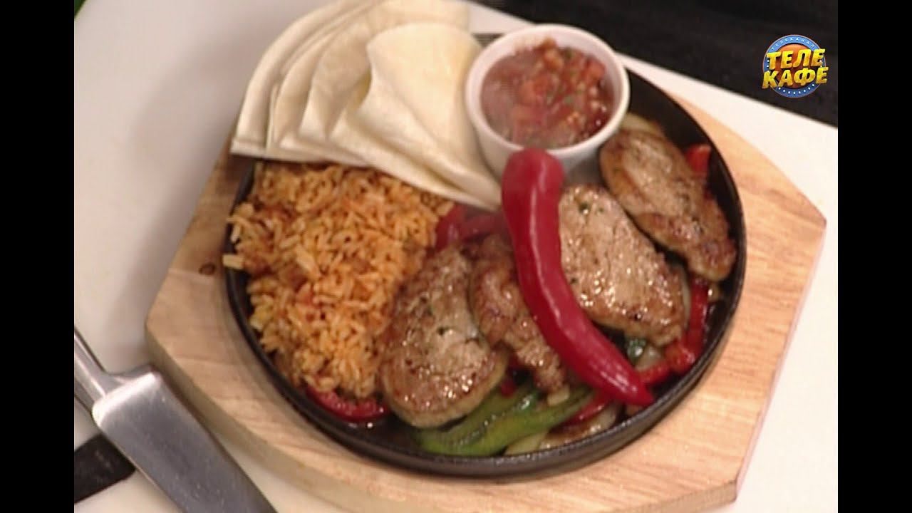 Мексиканская кухня: фахитас со свининой с соусом сальса и рисом