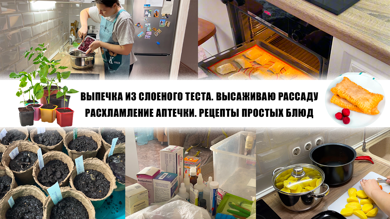 ВЫПЕЧКА ИЗ СЛОЕНОГО ТЕСТА. ВЫСАЖИВАЮ РАССАДУ РАСХЛАМЛЕНИЕ АПТЕЧКИ. РЕЦЕПТЫ ПРОСТЫХ БЛЮД