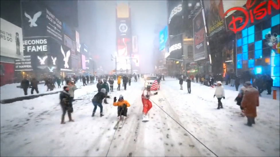 В Нью-Йорке группа молодых людей 24 января 2016 года устроила катания на сноубордах прямо по улицам города, не обращая внимания на полицию и других жителей.