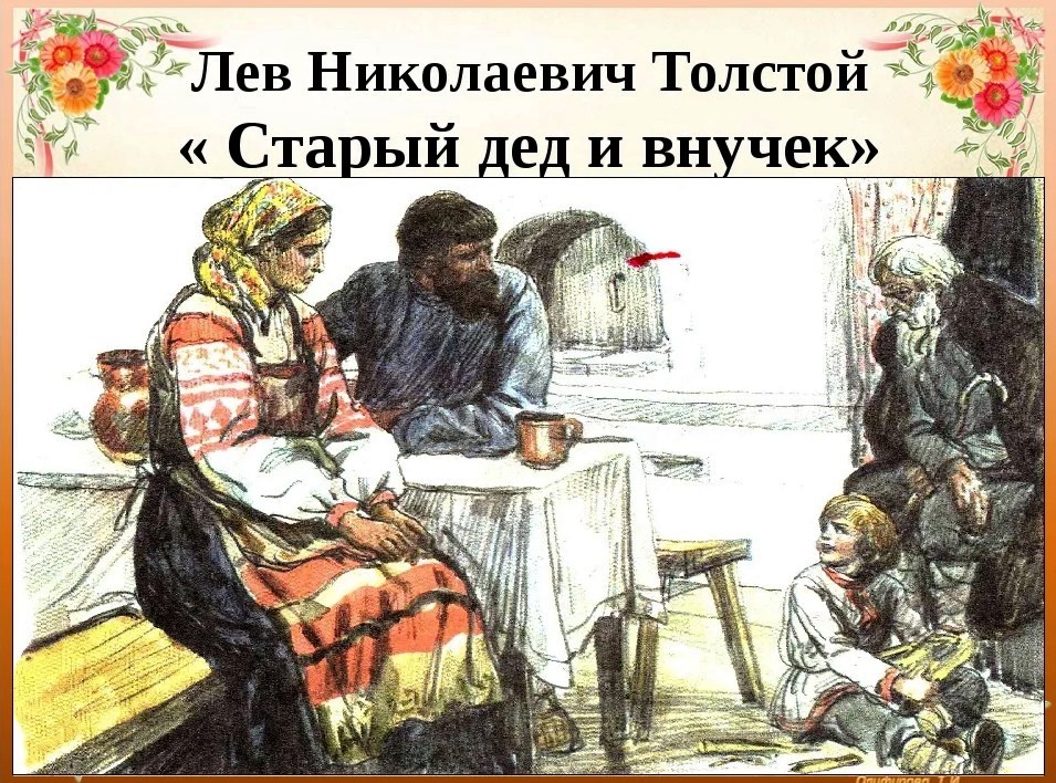 Дед сильно постарел. Он плохо слышал и видел. Каша вываливалась у него изо рта. Невестка и сын стали кормить деда за печкой. Когда дед разбил чашку, ему пригрозили кормить из лоханки. Миша стал выстругивать дощечки. Родители спросили, что он делает. Миша ответил, что лоханку, чтобы в старости родителей кормить. Родителям стало стыдно, и они посадили деда за стол. Список использованной литературы: 1. Крылов, Иван Андреевич (1769-1844). Огородник и Философ; Хозяин и Мыши; Лев и Барс / И. А. Крылов. Старый дед и внучек / Л. Н. Толстой; [худож. Н. В. Тарасова]. - Москва: Мой Мир, 2008. - 16 с.: цв. ил.; 24 см. - (Детская библиотека) (Мир басен: [для младшего школьного возраста]). Подготовлено ведущим библиотекарем Чеконской сельской библиотеки-филиала № 25 Е.С.Шевченко-Корнацкой