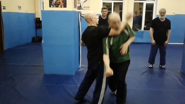 От бокового в голову.Провалить противника и сбить с ног ударом предплечья. В. Н. Крючков