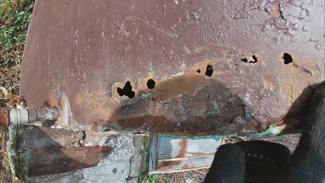 БИТУМ. КАК НАПЛАВИТЬ БИТУМ ГОРЕЛКОЙ. РЕМОНТ БАКА ДЛЯ ВОДЫ НА ПОЛИВКУ. Ремонт железной бочки