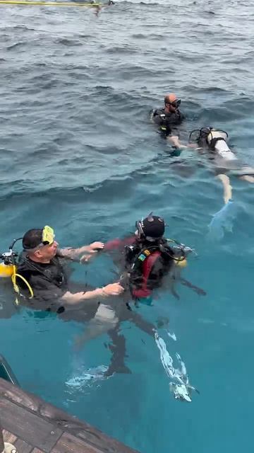 Инструктаж в воде у яхты в открытом море.