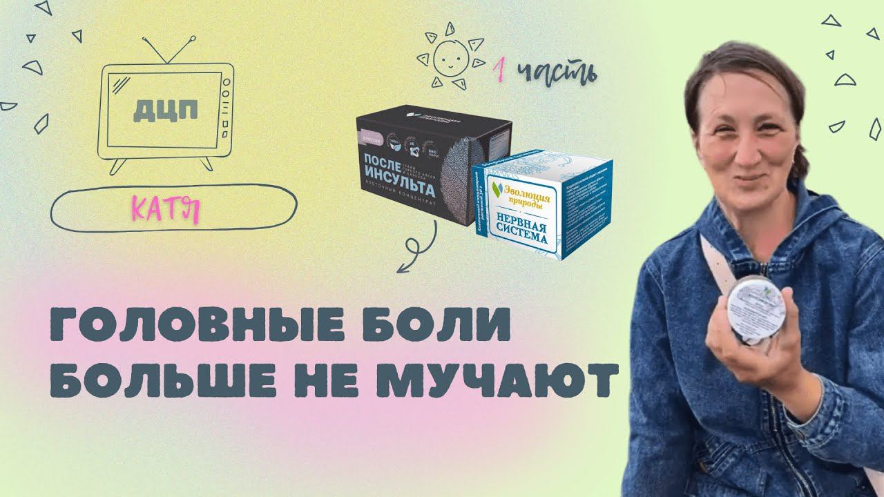 «Привет друзья! Меня зовут Екатерина, мне 45 лет уже. И я пью вот эти концентраты и мне они помогают. - А у тебя Катя какой диагноз, скажи пожалуйста? – ДЦП (церебральный паралич). -И скажи пожалуйста, ты сейчас месяц уже пьешь у тебя какие сейчас изменения/улучшения в чём ты их видишь? - Получается, что я пью концентраты и у меня подвижность улучшилась. (Хотя до этого, подвижности не было) – Да – Отлично. -И еще ты говорила про головные боли получается ушли? – Да. (Здорово!) -И чувствительность на сколько я знаю, лучше в руке чувствительность пошла? – Да. (Отлично!) Вот эти концентраты : «После инсульта» и «Нервная система». -Ты будешь их дальше пить, продолжать чтобы становилось лучше? –Да. Спасибо!»