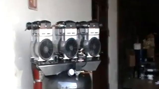 Our customer made air compressor based on 3 oil-less pump. Notice lower noise comparison to similar compressors of similar pumps.