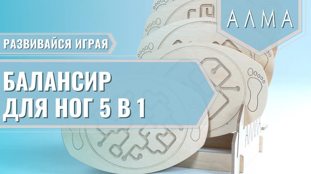 #нейротренажёр #балансир #АЛМА Нейротренажер «Балансир для ног 5 в 1» развивает зрительно-моторную координацию, вестибулярную систему, ловкость, помогает в преодолении поведенческих и эмоциональных расстройств. Развивает внимание. Способствует расширению поля зрения, улучшается восприятие информации. Ребенок может использовать «Балансир для ног 5 в 1»: – стоять на доске и управлять шариком в лабиринте при помощи баланса тела; – взять один лабиринт в руки или положить на стол и двигать шарик по лабиринту балансом движения рук или пальцами. Предназначен для нагрузки не более 90 кг. В комплекте 5 лабиринтов с удобной системой хранения, методическое пособие с конспектом занятий. Для детей от 3-х лет. Подробнее на сайте: https://clck.ru/zsGrG