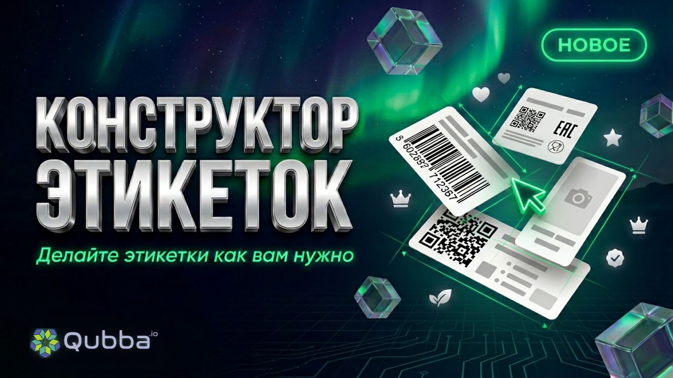 Создавайте этикетки по-своему: добавляйте иконки, используйте красивый каллиграфический шрифт, чтобы поблагодарить за покупку или призвать к действию. Вставляйте иконки Telegram и WhatsApp, брендируйте этикетки своими логотипами, вносите любую информацию, которая нужна вашему бизнесу -- всё это прямо в шаблонах Qubba. Конструктор этикеток Qubba: забудьте про шаблоны из 2010 года! Мы с нуля создали визуальный конструктор этикеток, встроенный прямо в систему учёта Qubba. Без сторонних сервисов. Без боли. Рассказываю, что он умеет. Полноценный визуальный редактор Перетаскивайте элементы прямо на макете этикетки. Двигайте, масштабируйте, выравнивайте -- всё как в нормальном дизайн-инструменте, только заточенном под одну задачу: делать этикетки быстро. Привязка к данным товара Любое поле из карточки товара в Qubba -- наименование, бренд, артикул, размер, цвет, состав, организация, производитель, цена -- превращается в динамическое поле на этикетке. Создали шаблон один раз -- он сам подставляет данные для каждого товара при печати. Штрихкоды и QR-коды Генерация штрихкодов (Code 128, EAN-13, Code 39 и др.) и QR-кодов прямо на макете. Добавили элемент -- он автоматически формируется из значения штрихкода товара. Знаки сертификации EAC и РСТ Те самые чёрно-белые графические знаки евразийского соответствия и российской сертификации -- уже встроены как готовые иконки. Перетащил на макет -- готово. Библиотека иконок 20+ иконок для любых задач: сердце, звезда, корона, огонь, снежинка, подарок, скидка, галочка, щит, эко-лист, рукопожатие, стрелки всех видов, Telegram, WhatsApp, знак «100%». Всё чёрно-белое, оптимизированное под термопечать. Типографика без ограничений Стандартные и каллиграфические шрифты (Marck Script, Caveat, Bad Script, Comforter). Настройка размера, жирности, выравнивания текста, межстрочного интервала -- для каждого элемента отдельно. Массовое редактирование Выделили несколько элементов -- и в один клик: выравнивание по левому краю или по верхнему, приведение размеров областей к единому значению (по большему или по меньшему), общий шрифт, общий размер. Вёрстка этикетки за минуты, а не часы. Межблочный интервал Задаёте отступ сверху и по бокам -- система автоматически распределяет блоки с равномерными промежутками. Этикетка выглядит аккуратно без ручной подгонки пикселей. 12 размеров этикеток От микро 20x30 мм (для ювелирки) до транспортных 100x150 мм и A4. Кнопка поворота на 90° мгновенно меняет ориентацию -- и всё содержимое остаётся на месте. Превью и печать в один клик Предпросмотр с подстановкой реальных данных товара. Печать напрямую из Qubba -- без скачивания PDF, без сторонних программ. Системные и пользовательские шаблоны Готовые шаблоны доступны сразу. Создавайте свои, сохраняйте -- они появляются в модалке печати для всей команды. Прямо из окна печати можно перейти в конструктор и создать новый шаблон. Интеграция с товарами и документами Qubba Выбрали товары в таблице -﹥ открыли печать -﹥ выбрали шаблон -﹥ получили этикетки. Работает и из раздела товаров, и из документов. Шаблоны из конструктора -- отдельная система, параллельная Qubba API, не мешает существующему процессу. Всё это работает в браузере. Без установки. Без зависимости от внешних API. Данные хранятся на вашем сервере. Конструктор этикеток в Qubba создан для тех, кому надоело подстраиваться под чужие шаблоны -- и кто хочет делать этикетки точно так, 