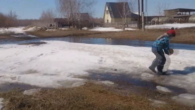 Весна в деревне. Пускаем кораблики. Дети играют в футбол и бегают по ручьям. Жизнь в деревне весной.