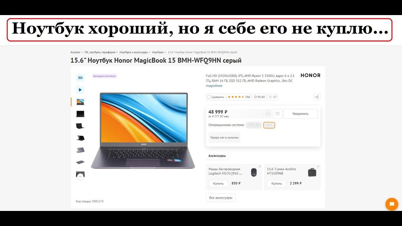 Обзор: HONOR MagicBook 15 (AMD Ryzen 5500U) 48.999 причин что бы его (не)купить.