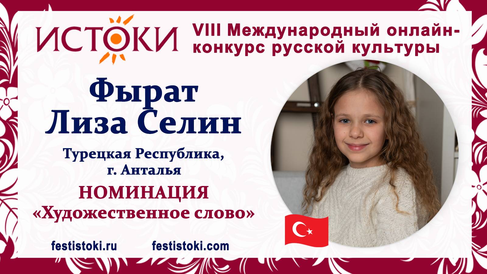 Фырат Лиза Селин, 9 лет. Турция, г. Анталья. "Считалия"