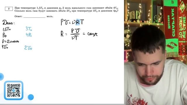 При температуре 1,5 T0 и давлении p0 2 моль идеального газа занимают объём 4V0. Сколько - №21135