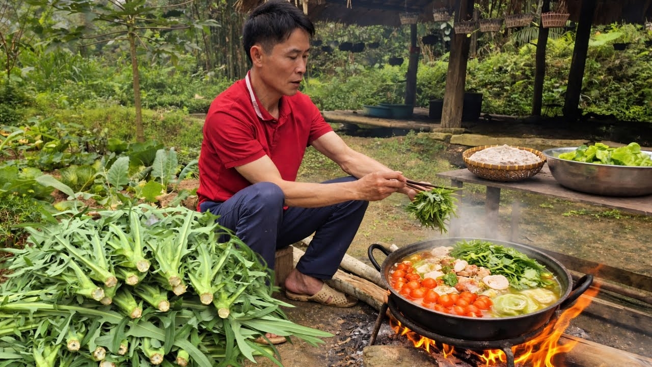 Собираю на ферме свежую зелень для продажи и готовлю вкуснейшее жаркое из свиных ножек. Вьетнам