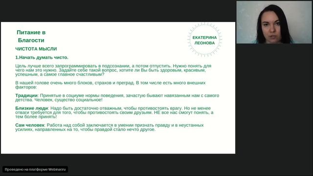 Первый открытый вебинар. Чистота мысли.