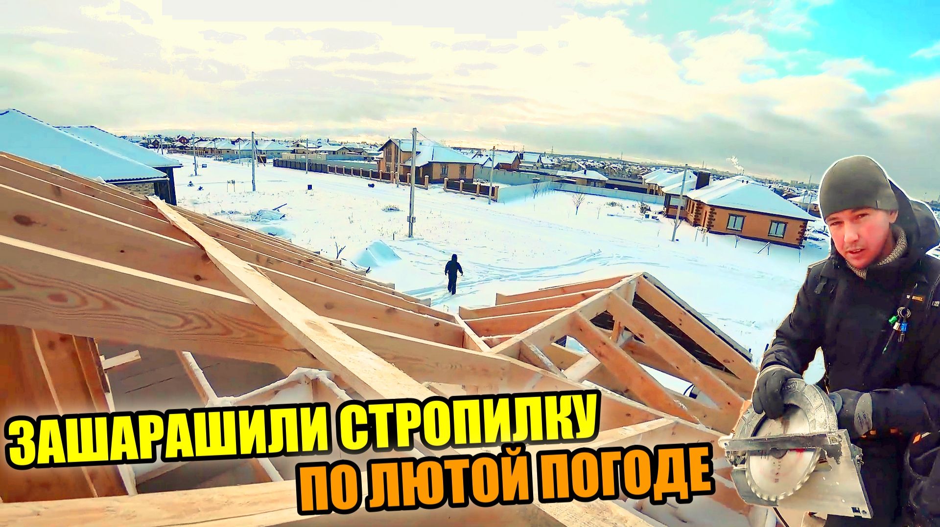 ЗА 2ДНЯ до Нового года ЗАБАБАХАЛИ стропильную часть по ЛЮТОЙ ПОГОДЕ! ЗАРЕЗАЕМ СТРОПИЛА!