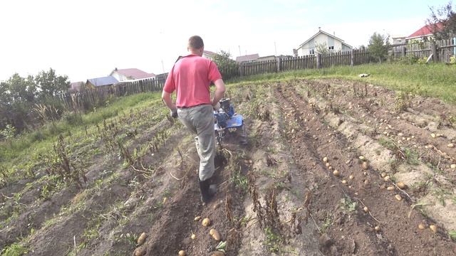 Копаем мотоблоком картошку.