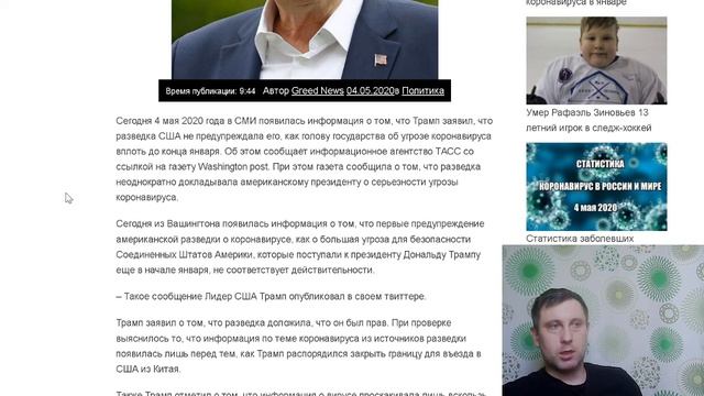 Источник: https://greednews.su/tramp-rasskazal-o-tom-chto-razvedka-molchala-ob-ugroze-koronavirusa-v-janvare Сегодня 4 мая 2020 года в СМИ появилась информация о том, что Трамп заявил, что разведка США не предупреждала его, как голову государства об угрозе коронавируса вплоть до конца января. Об этом сообщает информационное агентство ТАСС со ссылкой на газету Washington post. При этом газета сообщила о том, что разведка неоднократно докладывала американскому президенту о серьезности угрозы коронавируса. Сегодня из Вашингтона появилась информация о том, что первые предупреждение американской разведки о коронавирусе, как о большая угроза для безопасности Соединенных Штатов Америки, которые поступали к президенту Дональду Трампу еще в начале января, не соответствует действительности. – Такое сообщение Лидер США Трамп опубликовал в своем твиттере. Трамп заявил о том, что разведка доложила, что он был прав. При проверке выяснилось то, что информация по теме коронавируса из источников разведки появилась лишь перед тем, как Трамп распорядился закрыть границу для въезда в США из Китая. Также Трамп отметил о том, что информация о вирусе проскакивала лишь вскользь и о нем не говорили, как о высоко опасной угрозе. Трамп заявил о том, что СМИ, как всегда, лживые и выставляют все в нужном им свете. гугл код А вот ранее в газете Вашингтон пост появлялись сообщения о том, что якобы разведка неоднократно докладывала президенту тропу о серьезности угрозы нового коронавируса. При этом по информации газеты первое сообщение такого рода было отправлено президенту Америки еще 3 января 2020 года. На сегодня по информации Университета Джонса Хопкинса, который проводит подсчеты на основе сведений федеральных и местных властей, в США зафиксировано более 1,15 млн случаев заражения коронавирусом, умерли свыше 67 тыс. человек. На сегодня общее число заразившихся коронавируса в мире превысило 3,5 млн. человек и составило 3 507 265, а количество умерших уже достигло 247 491 человек. Причем эти данные о подтвержденных случаях, а те люди которые переболели вирусом и не знают об этом не учитываются, а также смерти которые были отнесены к обычной пневмонии также не участвуют в данной статистике. Поэтому вы можете прибавить еще данные, которые не участвуют в основной статистики и получите более правдивую картину ситуации.