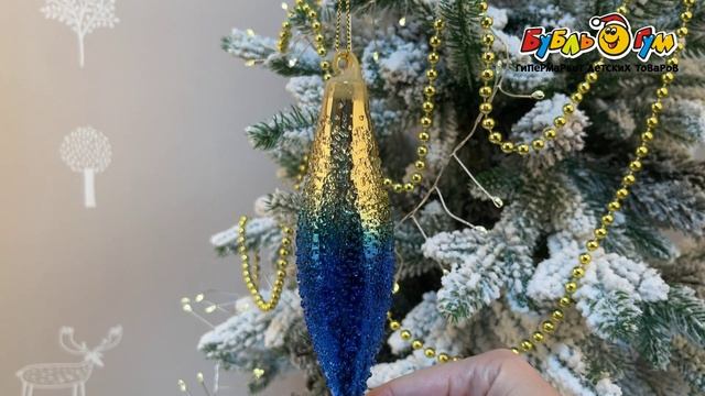 334417 Елочное украшение Сосулька с эффектом россы стеклянная сине-золотая 15см
