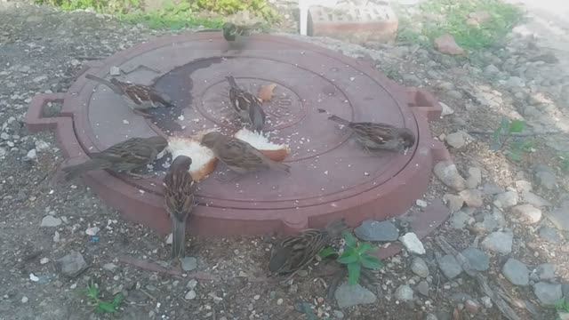 Домовый воробей подкормка Птицы хлебом