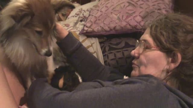 Морская свинка Белочка и собака Лета на кровати март2022 Таня Долгова Белка