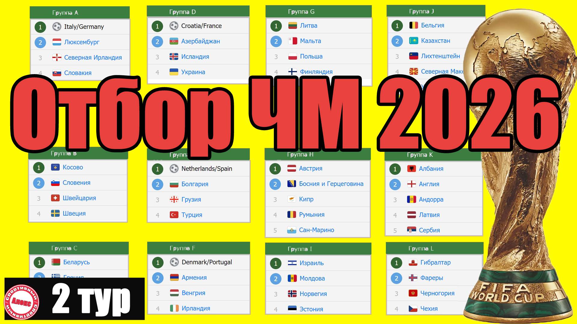 Отбор к ЧМ по футболу 2026 в Европе. 2 тур. Группы G, H, K. Результаты, таблица, расписание.