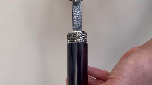 Трость ручной работы со скрытым клинком. Рукоять выполнена в классическом стиле из дерева черный граб. Клинок стилет - трехгранный из дамасской стали 400 слоёв.Трость фиксируется в ножнах за счёт кнопки фиксатора. Каждая трость комплектуется летним и зимним наконечником. Клинок к любой трости можем сделать как съемным с закручивающимся механизмом 4 оборота, так и несъемным с кнопкой фиксатором.