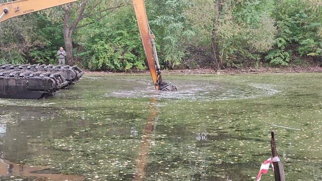 Очистка прудов плавающем экскаватором в Б-Болдине.
