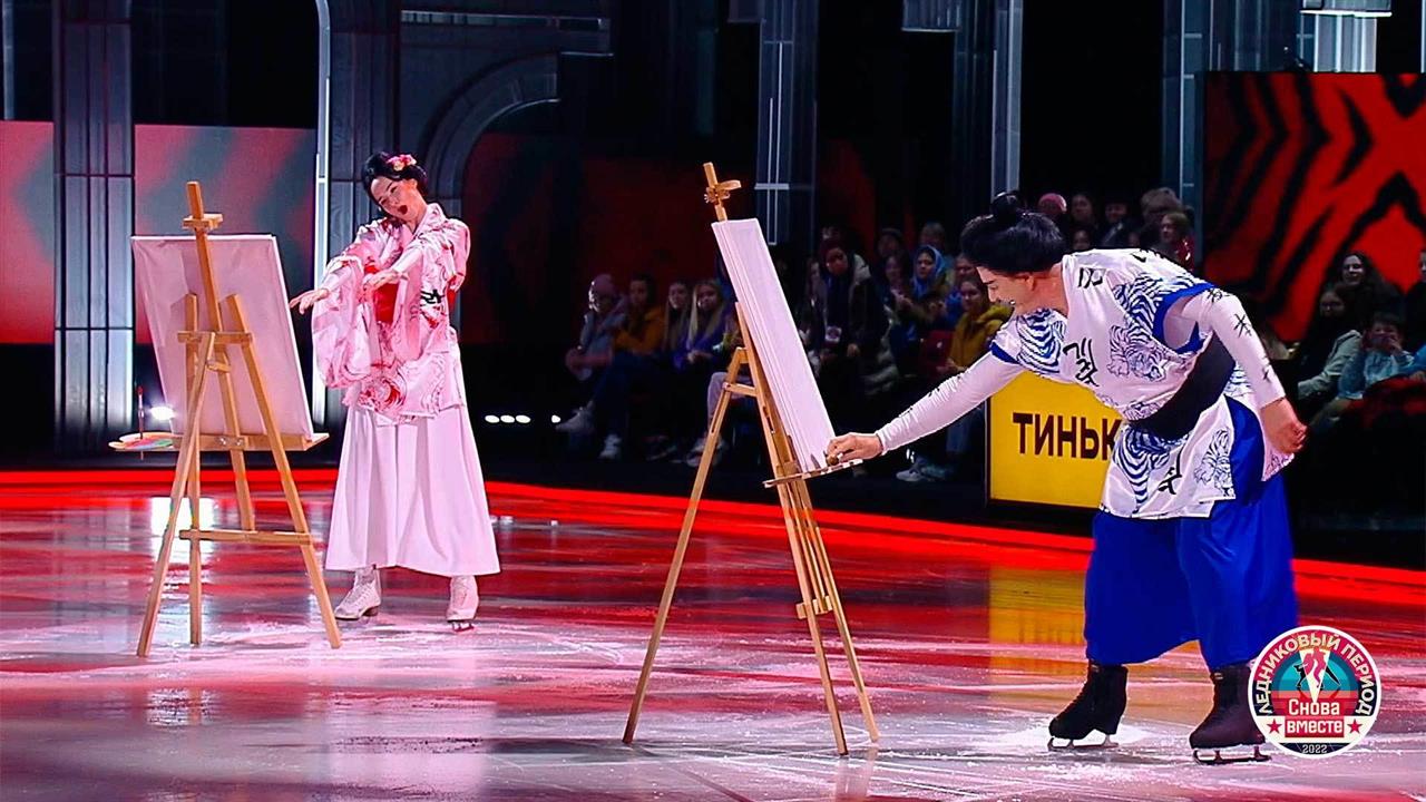 На льду — чемпионка мира Оксана Домнина и артист театра и кино Марат Башаров. Пара выступает под композицию «Dorifu no Zundoko Bushi» (ドリフのズンドコ節) в исполнении The Drifters (ザ・ドリフターズ).