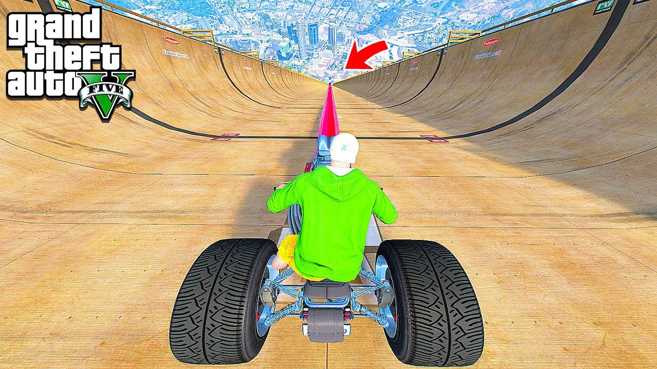 СПУСК БЕЗ ТОРМОЗОВ на САМОМ ДЛИННОМ МОТОЦИКЛЕ по МЕГА ТРАМПЛИНУ в ГТА 5 МОДЫ - ЭКСПЕРИМЕНТЫ в GTA 5