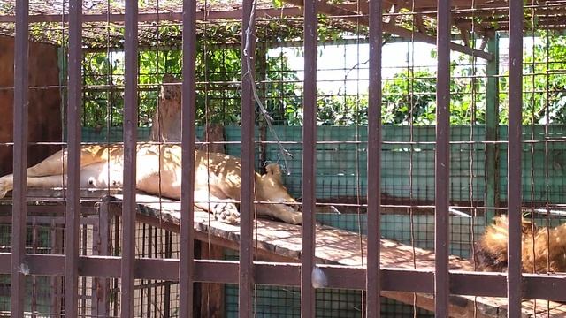 Лев и львица лежат спят, как котята в зоопарке в станице ГОЛУБИЦКАЯ
