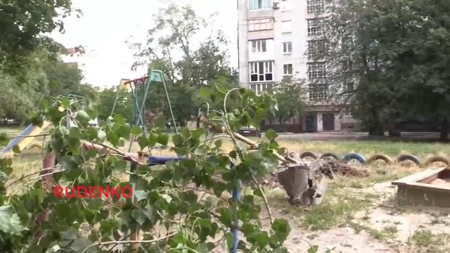 Обстрел Кировского района г Донецка. Всё как всегда, торчащие ураганы в детских площадках, заминиров