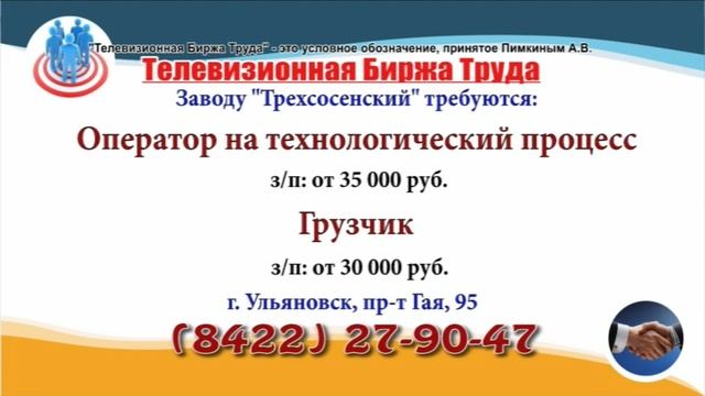 Вакансии и телефоны прямых работодателей в специализированной программе по трудоустройству "Телевизионная Биржа Труда" - г.Ульяновск