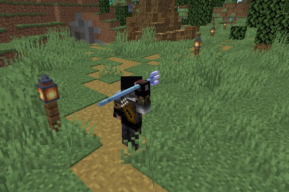 После зачарования трезубца на верность - он начнет эффектно возвращаться, в отличие от обычного! Не зачарованный трезубец: Трезубец можно бросить, нажав и удерживая ПКМ. Летает по траектории стрелы. Если трезубец попадёт в блок, то он застрянет в нём; если в сущность, то после попадания, он отскочит и приземлится рядом.