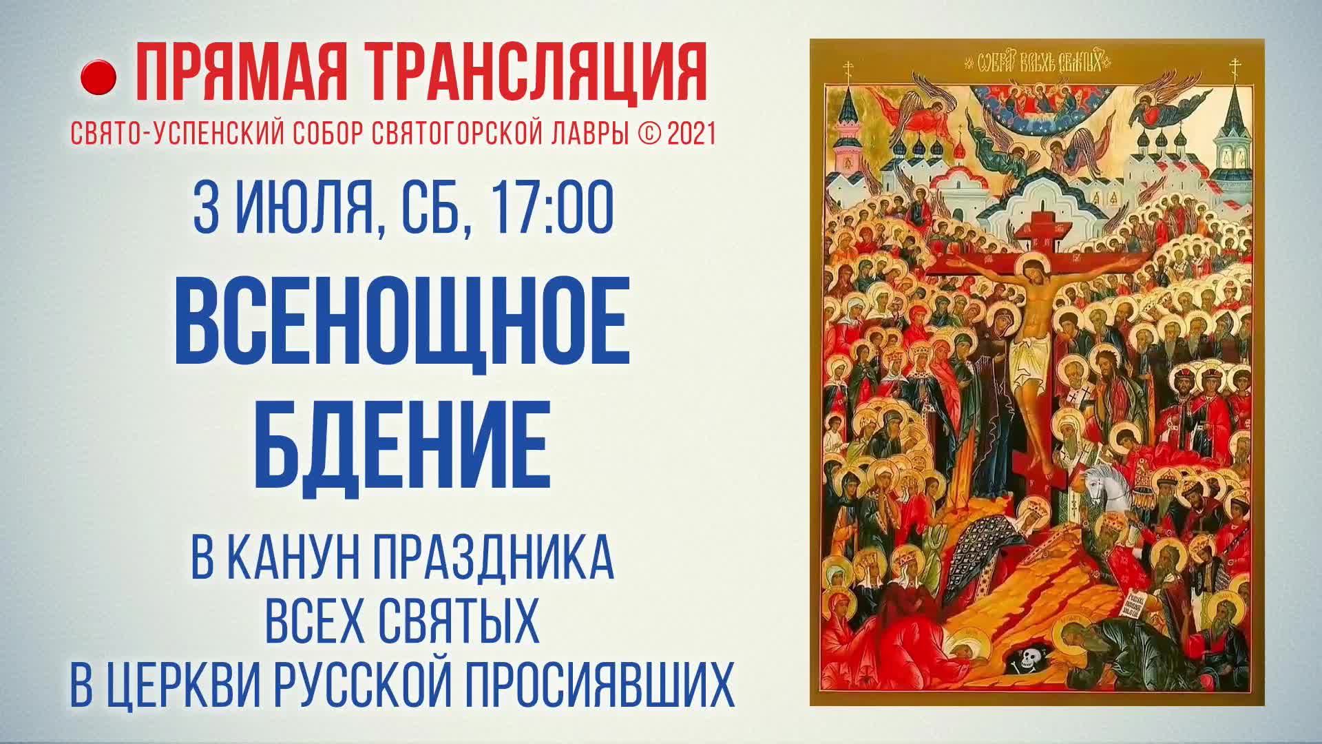 Прямая трансляция. Всенощное бдение 03.07.2021 г.