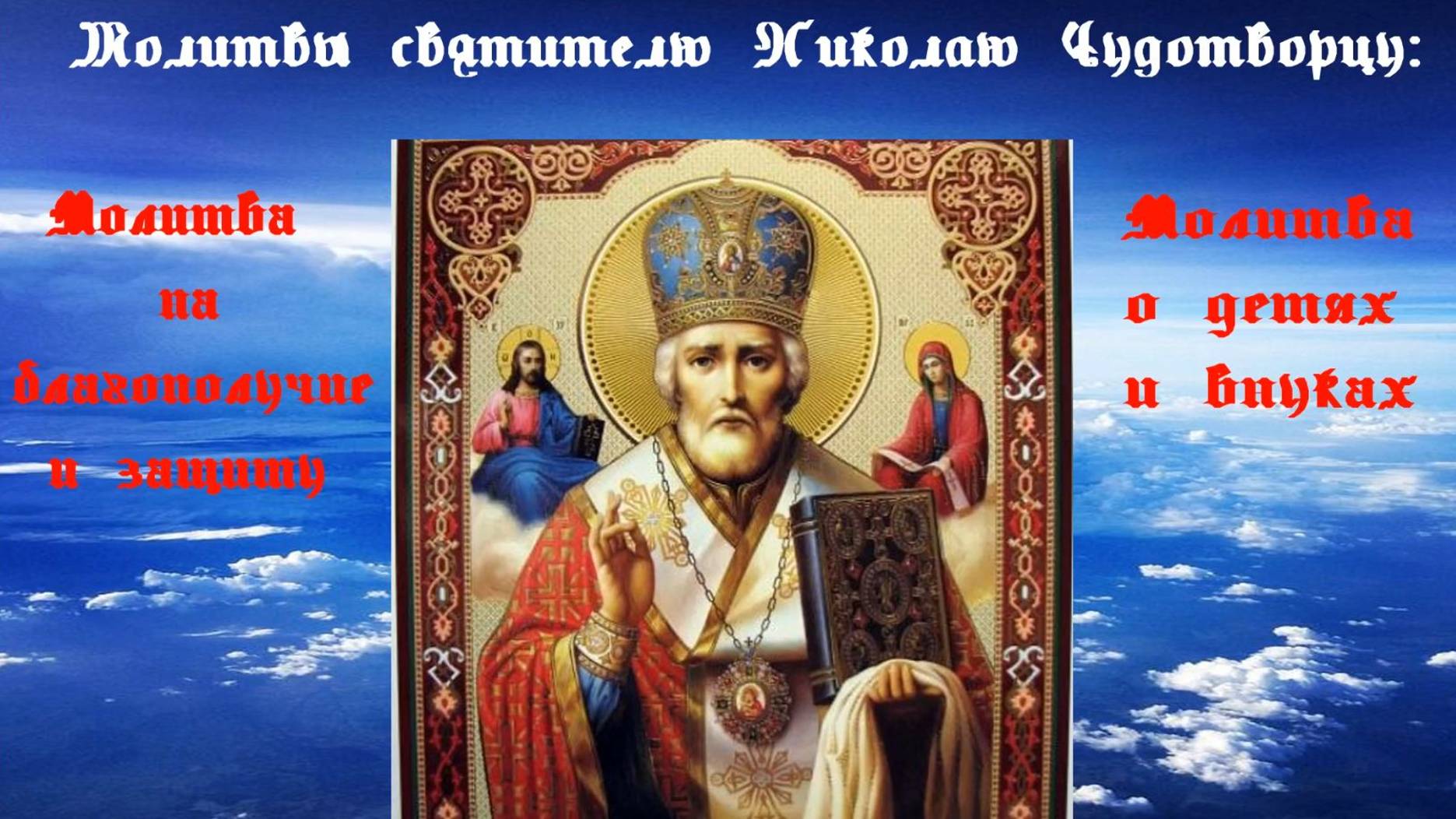 Молитвы к святителю Николаю Чудотворцу: молитва на благополучие и защиту; молитва о детях и внуках.