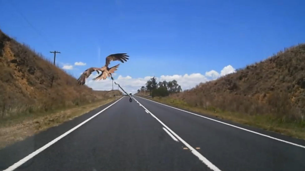 В Австралии орел, поймавший змею, не удержал свою добычу, которая выскользнула и попала прямо в ветровое стекло проезжавшего автомобиля.