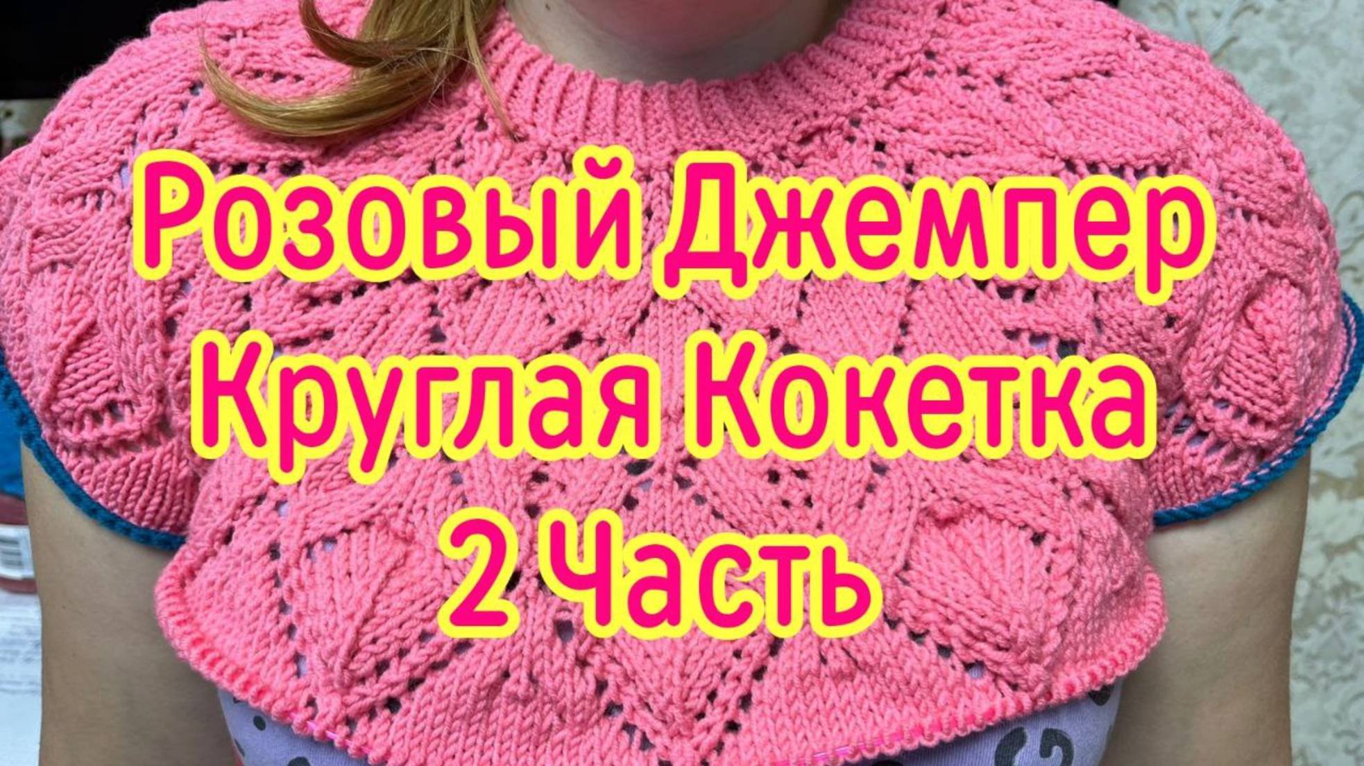 Розовый джемпер на 48 - 50 размер. Круглая кокетка 2 часть