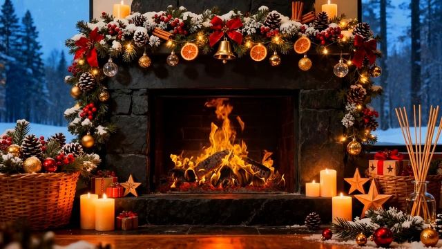 Зимний Камин. Снег за Окном.