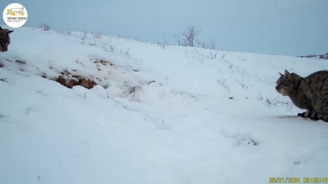 Герой нашего сегодняшнего ролика наверняка хотел бы походить на своих могучих дальних родственников – леопардов и снежных барсов. Но в заповеднике «Черные земли» ему приходится довольствоваться ролями второго плана, пропуская на вершину пищевой пирамиды представителей семейства псовых – волка, шакала и лисицу. Тем не менее, степной кот считается одним из самых успешных охотников, грозой мышей-полевок, песчанок и жаворонков. Степной кот, как отдельный вид, появился около 130 тысяч лет назад, а 10 тысяч лет назад был одомашнен на Ближнем Востоке и стал родоначальником домашней кошки. Фотоловушке заповедника удалось зафиксировать призывный крик степного кота, сидящего у заснеженной норы и адресованного сородичам: другим самцам – что этот участок степи уже занят, самкам – что он является хозяином этого участка и, соответственно, завидным женихом!