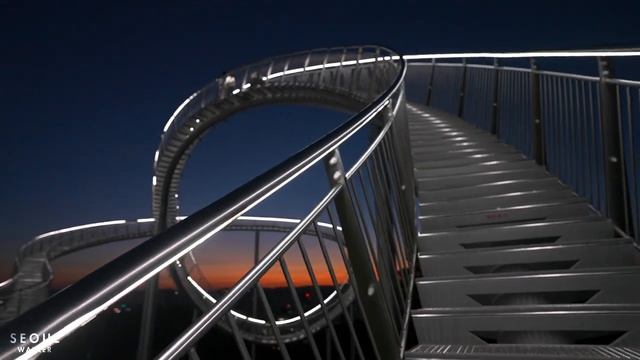 Space Walk is a trekking trail 333 meters high with 717 steps in total. Curved steel frame with bright lightings portray the symbol of Pohang "the city of steel and light".Visitors can enjoy a 360 degree panoramic view of the city and factories, as well as enjoy amazing sunsets and sunrises. Filmed: Thursday, October 5, 2023, 5:55PM KST Weather: Sunny ? Temperature: 18℃ / 64℉