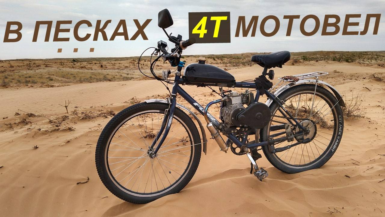 На велике с мотором (4Т) в пустыню - Путешествие на бархан Большой Брат (Веломотор 142-144F в деле)