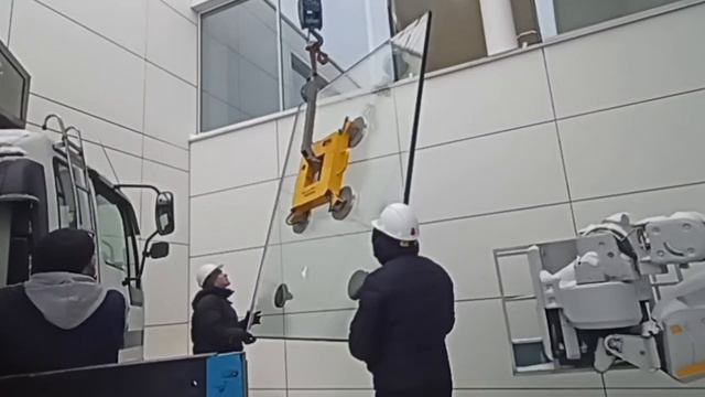 Как заменить разбитый стеклопакет с помощь автовышки, манипулятора и вакуумной присоски Быстрая Верс