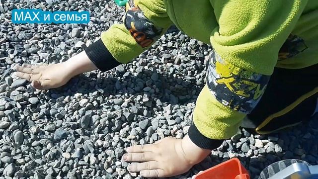 Играем с машинками в камнях на улице