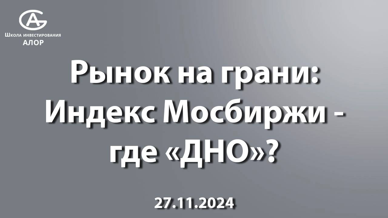 Приглашаем Вас на бесплатный, 3-х дневный интенсив "Введение в алготрейдинг" С 27 по 29 ноября нашим экспертом выступит создатель одного из самых больших сообществ программистов трейдинга Old School Algo, а так же главный архитектор и разработчик платформы для создания, тестирования и запуска механических торговых систем OsEngine, Алексей Ван На интенсиве обсудим следующие темы: - место алготрейдеров на бирже, кто они и чем заняты? - поговорим о том, что делать роботов просто, но делать прибыльных тяжело. Познакомимся с понятием переоптимизации и робастности. На примере рассмотрим «преоптимизированного» робота и того, который с большей долей вероятности будет прибыльным. - поговорим о FOMO, рисках, терпению и размерах депозита для алготорговли. Ссылка для регистрации https://alorschool.ru/vvedenie-v-algotreiding?utm_source=YTBschool&utm_medium=27112024&utm_campaign=van27112024 В свежем обзоре событий на российском рынке акций мы анализируем недавнее падение Индекса Мосбиржи под ключевую отметку в 2500 пунктов и рассматриваем влияние жесткой денежно-кредитной политики, ухудшения геополитической ситуации и снижения курса рубля на дальнейшую динамику рынка. Обсуждаем также возможности для инвестиций в акции крупных банков, несмотря на предстоящие экономические вызовы. Присоединяйтесь к нашему анализу и узнайте, где может оказаться «дно» для рынка. Подписывайтесь на телеграмм-канал нашей Школы инвестирования и будьте в курсе всех наших событий https://t.me/Alor_education Мы на Youtube https://www.youtube.com/@alorschooltv Мы в Дзен https://dzen.ru/alorschooltv Мы на RuTube https://rutube.ru/channel/41032227/ Мы в ВК https://vk.com/video/@alorschool Научитесь самостоятельно формировать и управлять опционным портфелем на любом текущем состоянии рынка США для достижения целевой прибыли http://alorschool.ru/torgovlya-opcionami-na-amerikanskom-rynke?utm_source=YTBschool&utm_medium=21102024&utm_campaign=usoptions Обучение инвестициям https://alorschool.ru/?utm_source=YTBschool&utm_medium=21102024&utm_campaign=mainpage Подписывайтесь на канал и ждем вас в нашей школе инвестиций! Открыть брокерский счет: https://www.alorbroker.ru/open?promo=L0642 Не является деятельностью по инвестиционному консультированию. Брокерские услуги предоставляются ООО «АЛОР +» на основании Лицензии № 077-04827-100000, выданной ФСФР России. Депозитарные услуги предоставляются ООО «АЛОР +» на основании Лицензии № 077-10965-000100, выданной ФСФР России. ООО «АЛОР +» ИНН 7709221010 КПП 772501001. #утренний_брифинг #брифинг #трейдинг #утренний_брифинг #брифинг #трейдинг #фондоваябиржа #биржа #фондовыйрынок #московскаябиржа #ценананефть #курсдолларанасегодня #курсдоллара #обзор_акций #пара_доллар_рубль #мосбиржа #акции #дивиденды #акции_в_фокусе #аналитикарынка #доллар #сша #нефтьпрогноз #сбербанк #новости #фьючерсы #валюта #центробанк #ключеваяставка #валютнаяпара #рубль #лукойл #газпромнефть #прямой_эфир #вебинар #alorschool #27.11.2024