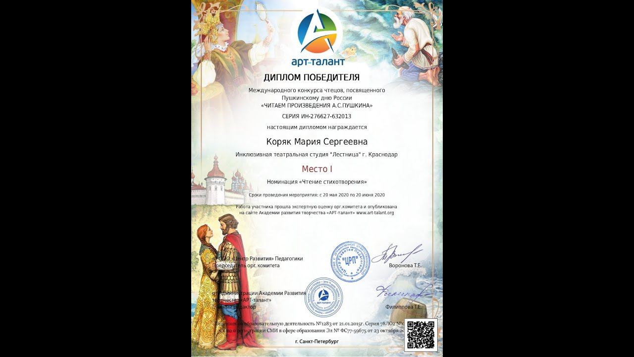 Поздравляем Марию Коряк актрису инклюзивной театральной студии "Лестница", группа Пластилин с очередной победой!!! #ИТСЛестница #театр #победителиконкурса #АРТТалант #инклюзия #читаемПушкина #ПисьмоТатьяны #ЕвгенийОнегин #ПушкинАС #Краснодар Проекты Инклюзивной театральной студии "Лестница" реализуются при поддержке фонда президентских грантов.