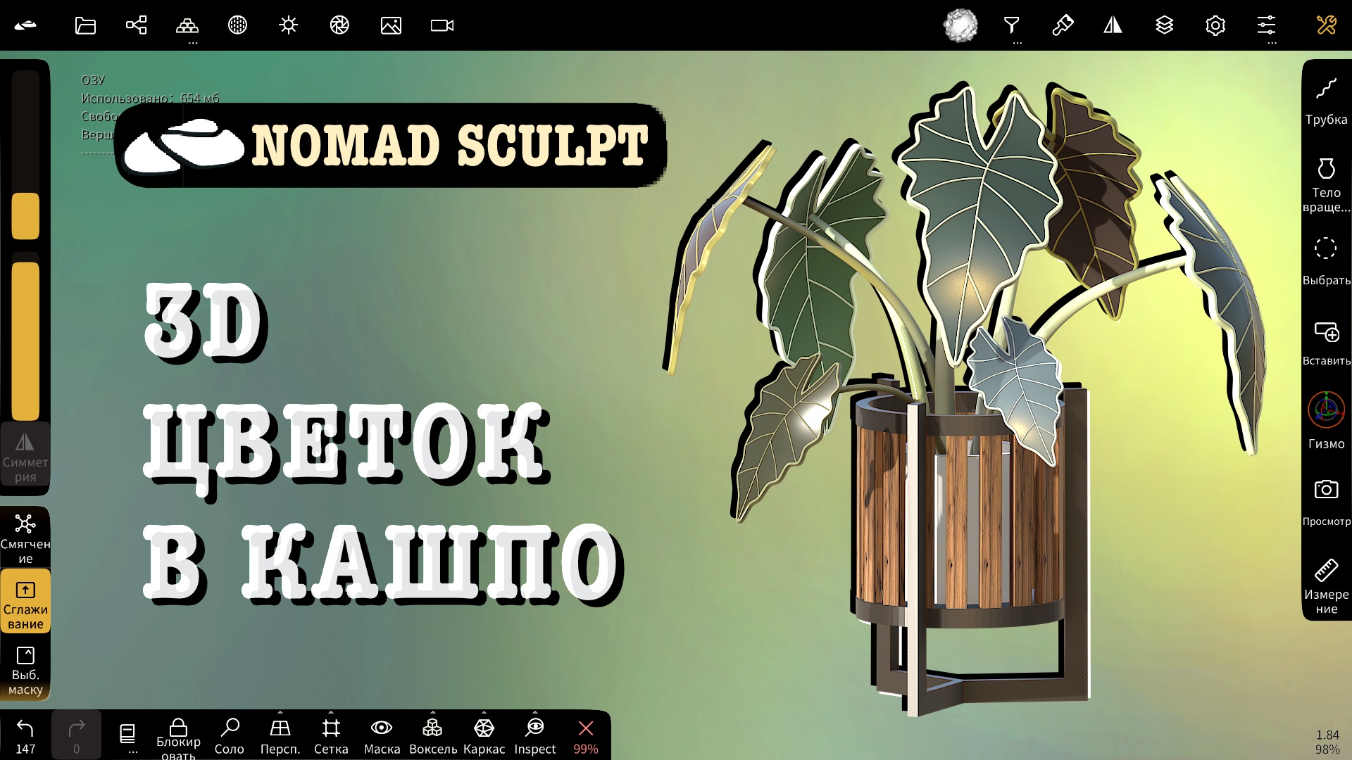 Стилизованный цветок в кашпо в Nomad Sculpt. 3d уроки для начинающих